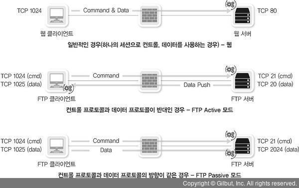 - 클라이언트 → 서버 : Control Connection (TCP 21)