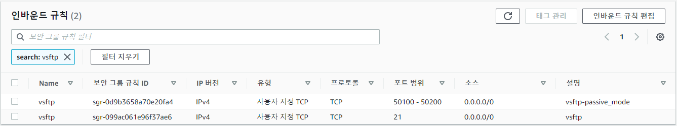 Passive Mode 사용 시 다음 포트를 열어야 한다.