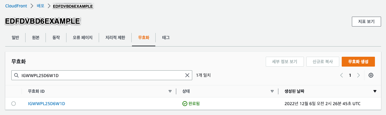 AWS Management Console을 통해 CloudFront 무효화(Invalidation)의 상태를 확인