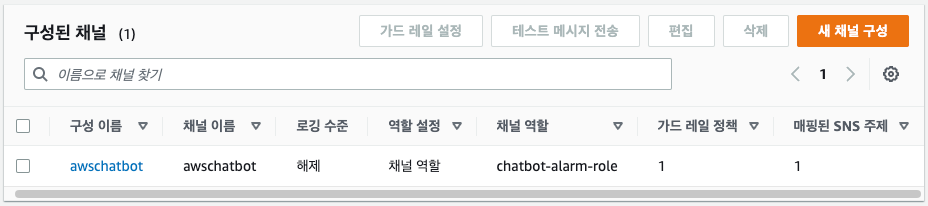 채널 생성 > awschatbot