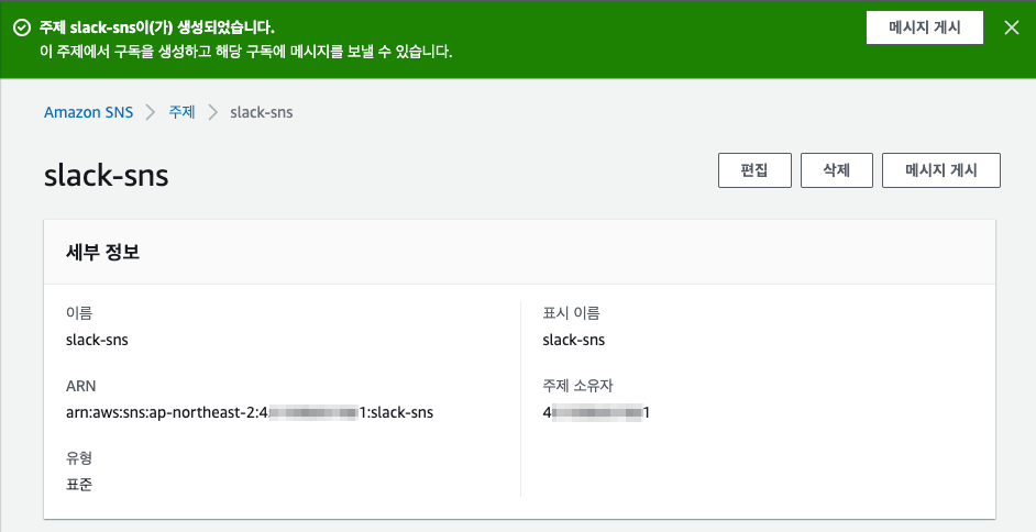 - Amazon SNS - 주제 생성
