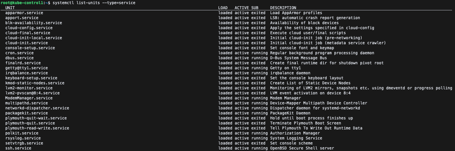 - systemctl : systemd 서비스 및 유닛(unit)을 관리하기 위한 명령어.