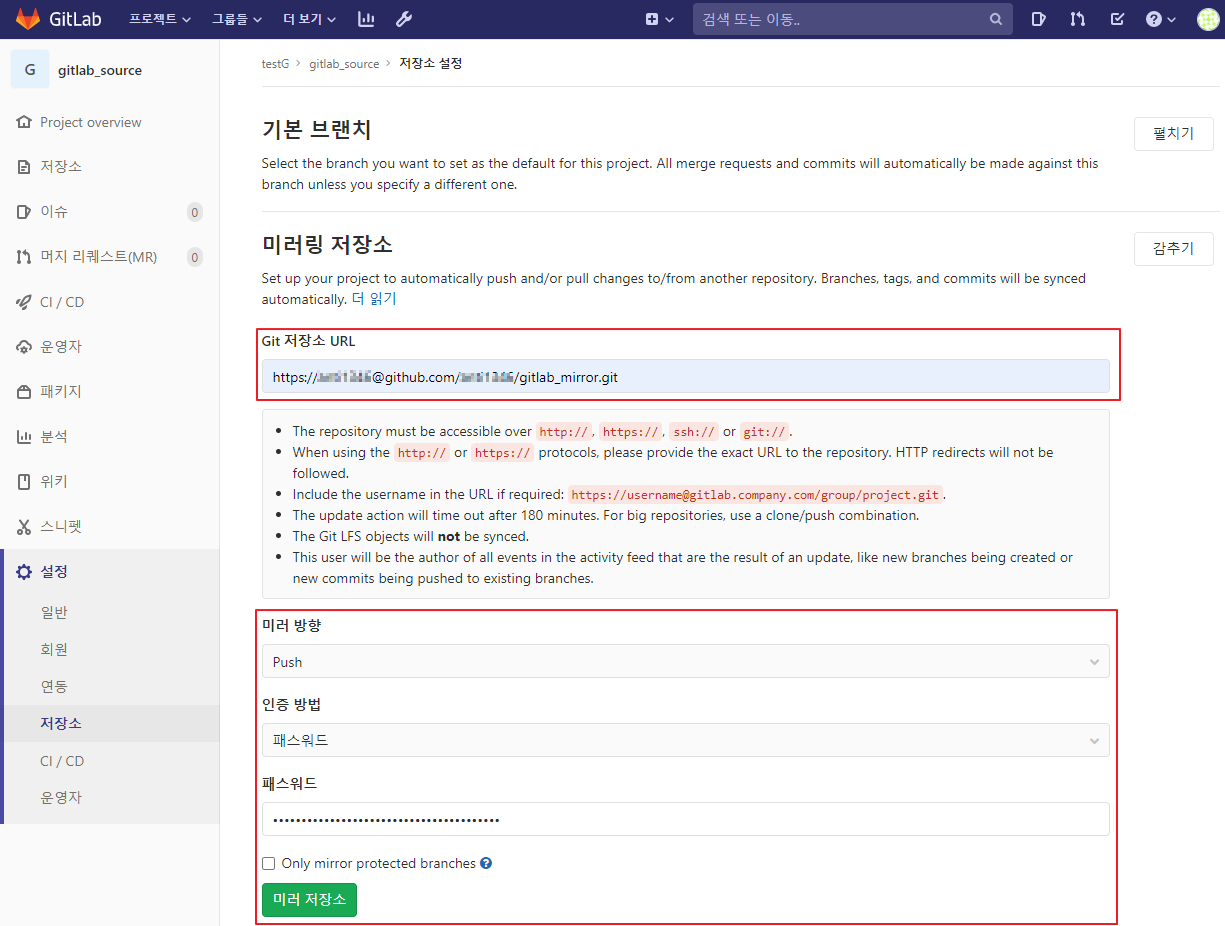 GitLab에서 리포지토리 미러링을 구성하는 방법(gitlab -> github 미러링)