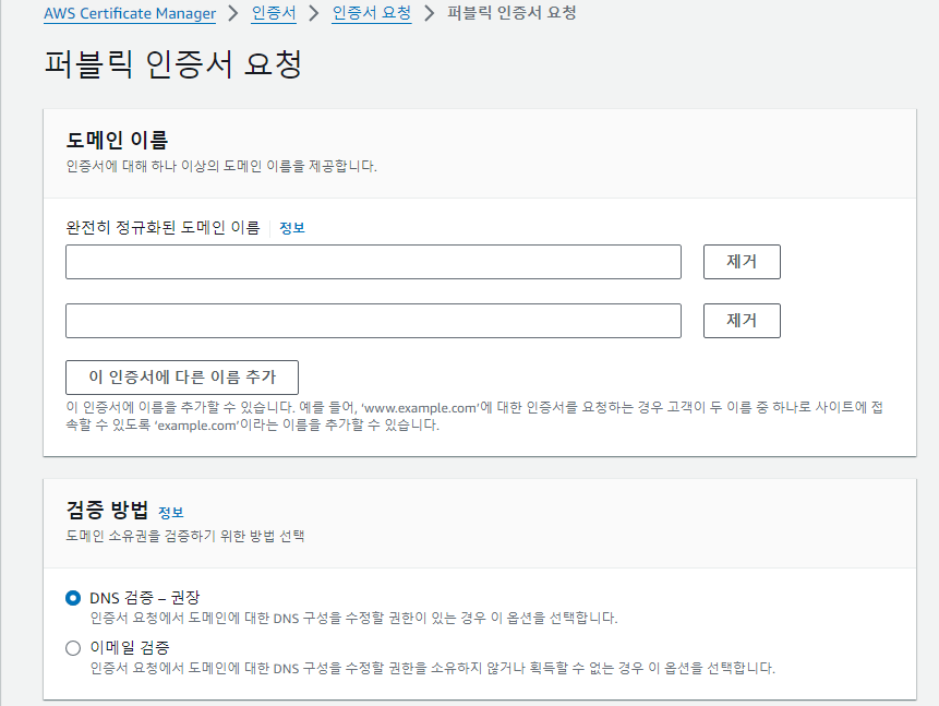 2. ACM(AWS Certificate Manager)에서 SSL 인증서 생성