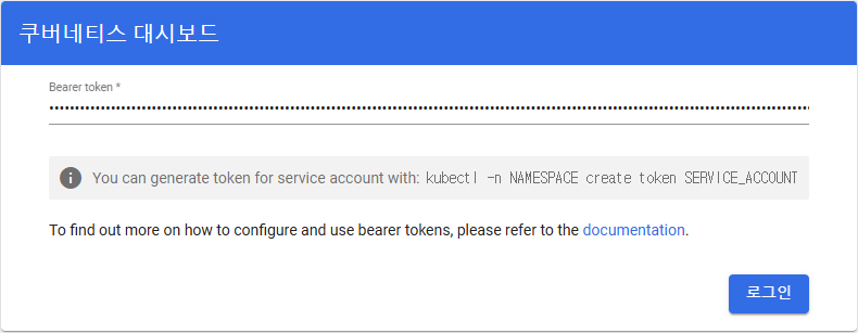- 쿠버네티스 문서 : 쿠버네티스 대시보드를 배포하고 접속하기