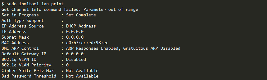 ipmitool 명령을 사용하여 IPMI 정보를 조회할 수 있습니다.