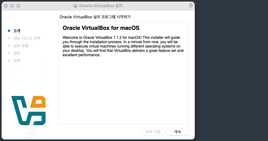 다운로드한 VirtualBox 설치 파일(.dmg)을 실행합니다.