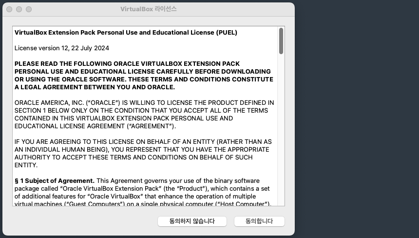 다운로드한 VirtualBox Extension Pack 설치 파일(.vbox-extpack)을 실행합니다.