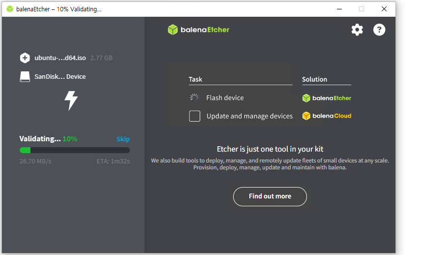 Etcher 실행