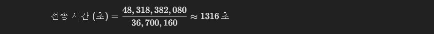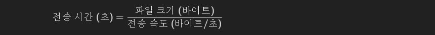 전송 속도와 파일 크기를 이용해 전송 시간을 계산합니다.