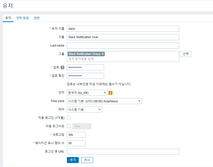 - 그룹 이름 : Slack Notification Group