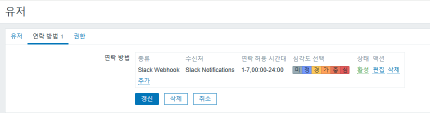 경고 > 미디어 타입 > 연락 방법 생성