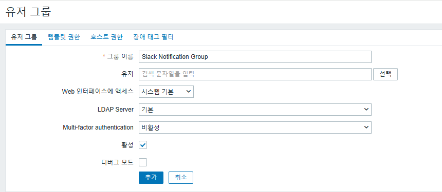 - 그룹 : Slack Notification Group