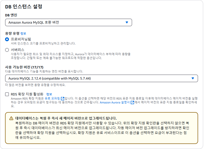 Amazon RDS에서 스냅샷 복원을 하는 방법