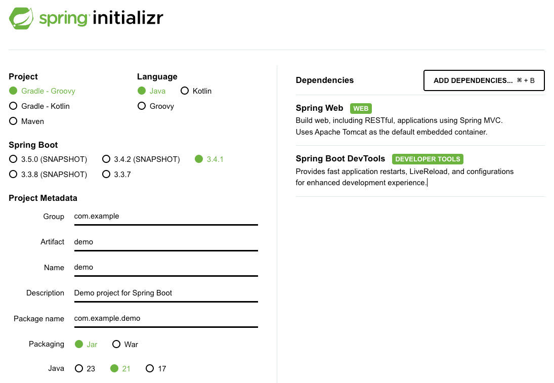 spring initializr(link)