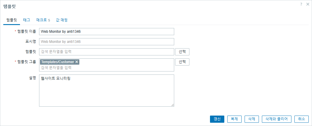 - 템플릿 이름 : Web Monitor Template