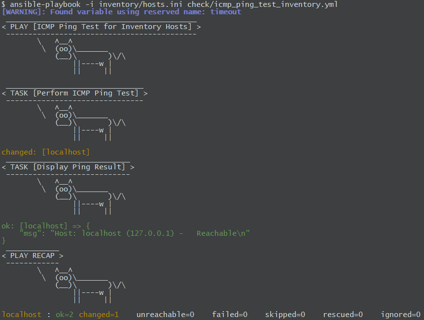 ansible-playbook -i inventory/hosts.ini check/icmp_ping_test_inventory.yml