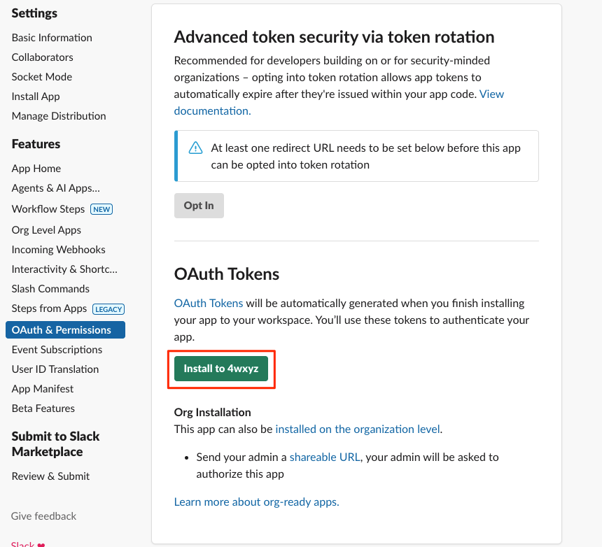 OAuth & Permissions 클릭