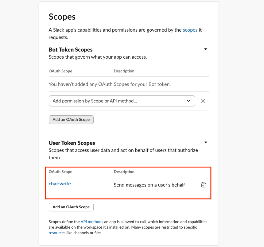 • OAuth Scope: chat:write