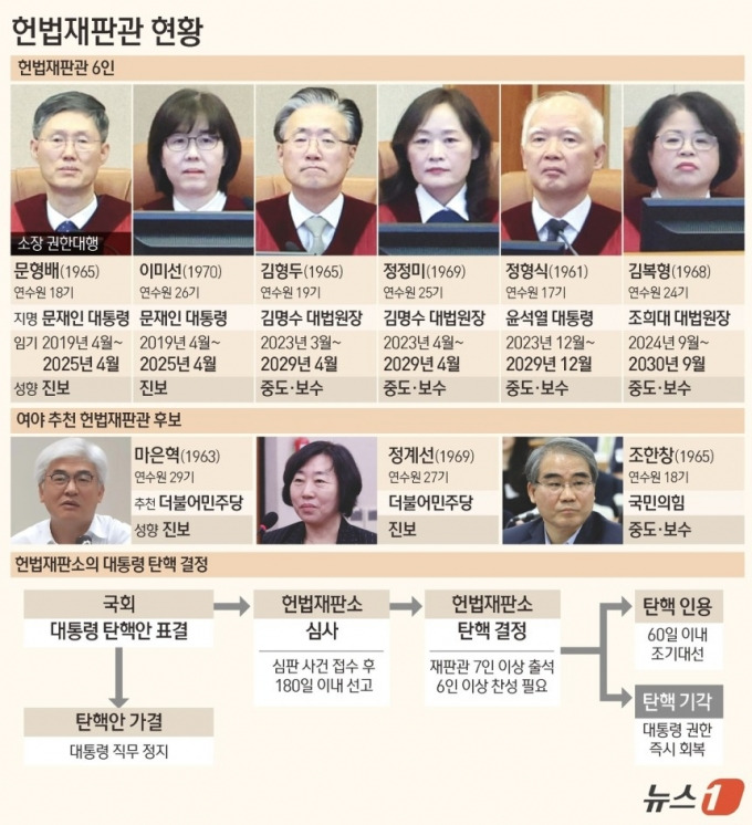 - 머니투데이 - 헌재 8인 체제 구성…尹 탄핵심판 내년 4월 이전 결론 '파란불'