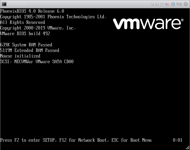 GRUB 메뉴 진입 시간을 확보하려면 VMware 설정합니다.