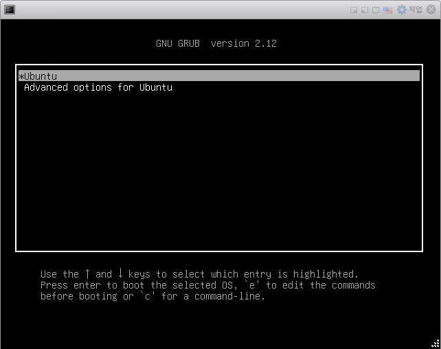 변경 저장 후 VM 부팅 → GRUB 키 (Shift 또는 Esc) 반복 입력