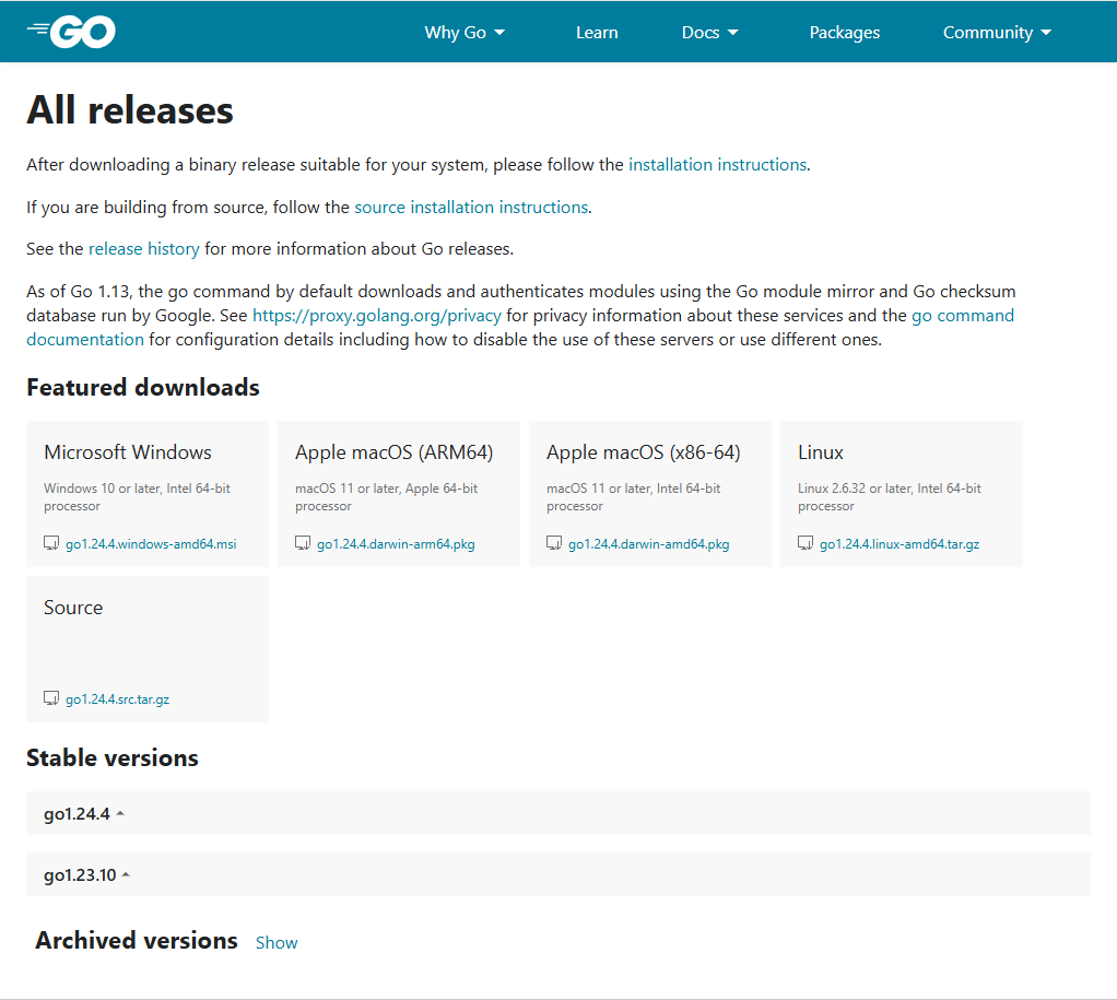 - apt로 설치되는 Go는 보통 구버전입니다. 공식 사이트에서 최신 버전 설치를 권장합니다.