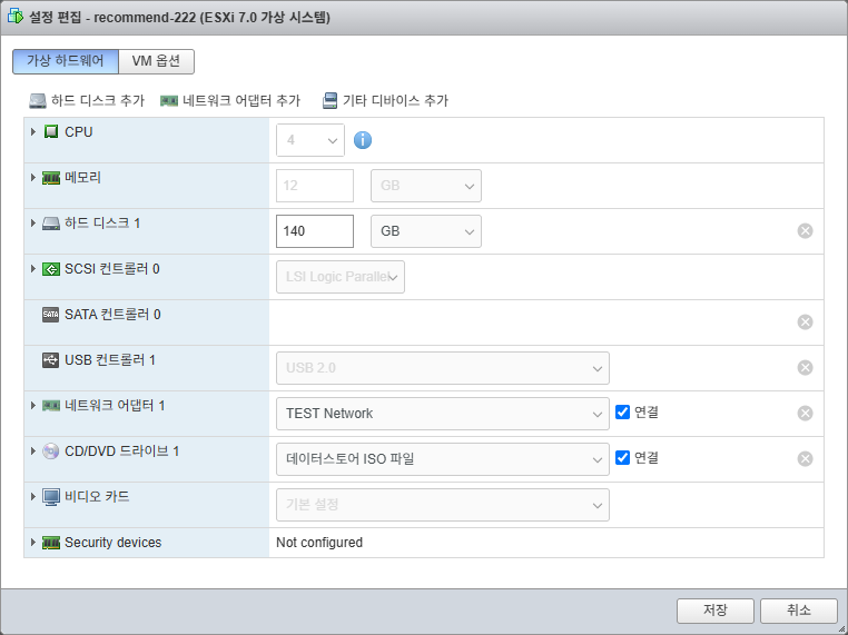 2. Edit Settings → Hard disk → 원하는 크기만큼 확장 (예: 40GB → 100GB 추가해서 140GB로)