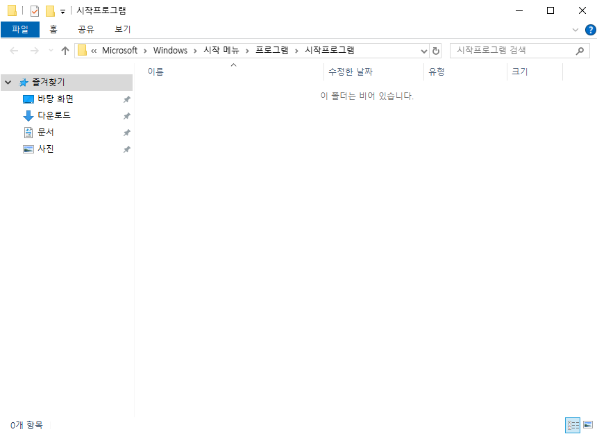 Win + R → shell:startup 입력 → Enter → 사용자 시작프로그램 폴더 열림