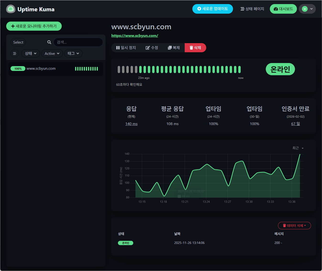 Uptime Kuma는 간단하게 서버/서비스 상태를 모니터링할 수 있는 강력한 웹 UI 도구입니다.