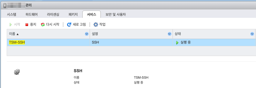 관리(Manage) → 서비스(Services) → TSM-SSH → 시작(Start)