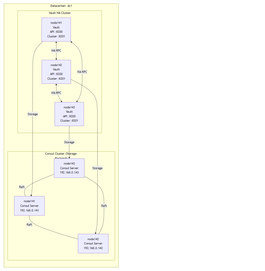우분투 24.04 환경에서 3대의 노드를 사용하여 Consul을 Storage Backend로 사용하는 Vault HA 클러스터를 구성하는 방법입니다. Consul은 데이터 저장소 및 HA 조정 역할을 수행하고 Vault는 Active/Standby 구조로 동작합니다.