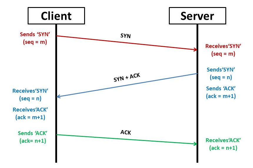 TCP 연결은 다음 순서로 진행됩니다.