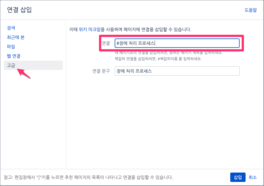 Confluence 책갈피(anchor)