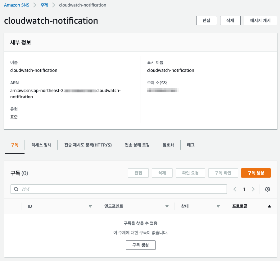 - 이름 : cloudwatch-notification