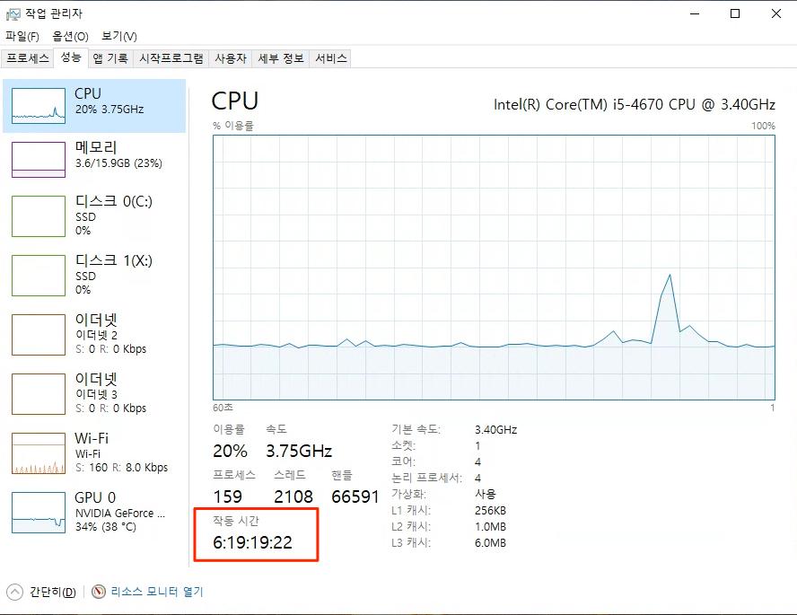 원도우에서 시스템 부팅 시간(uptime)을 확인하는 방법