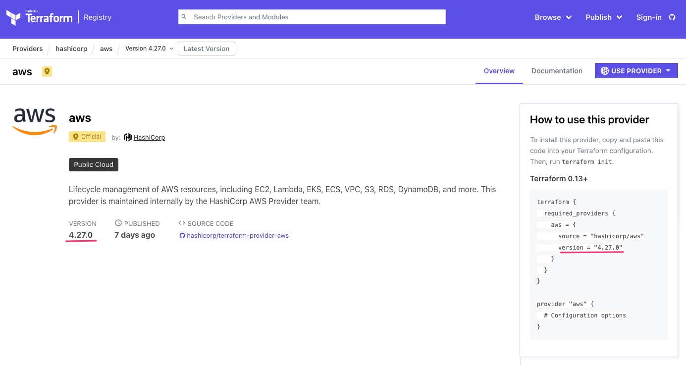 - https://registry.terraform.io/providers/hashicorp/aws/latest