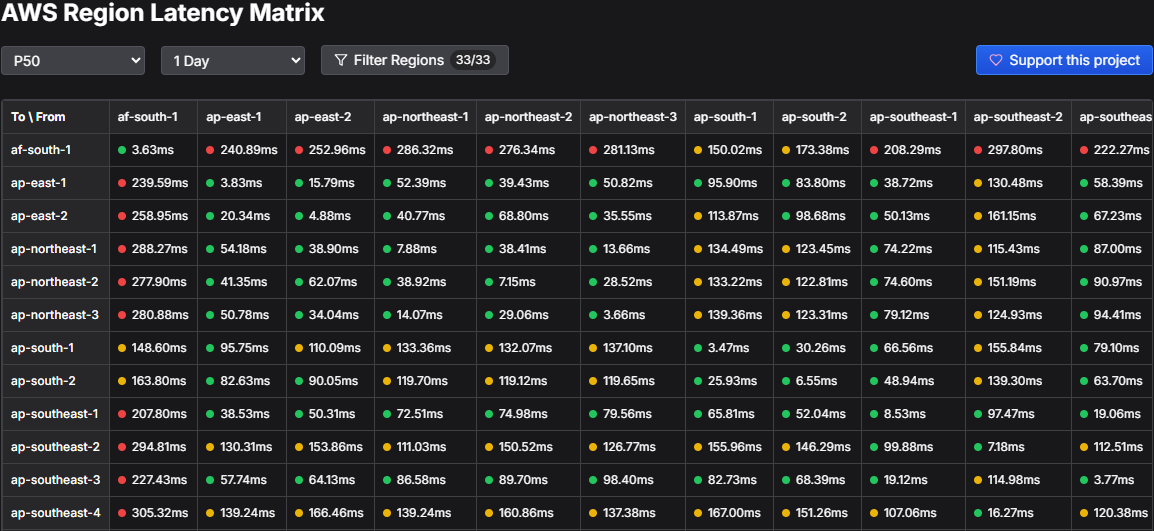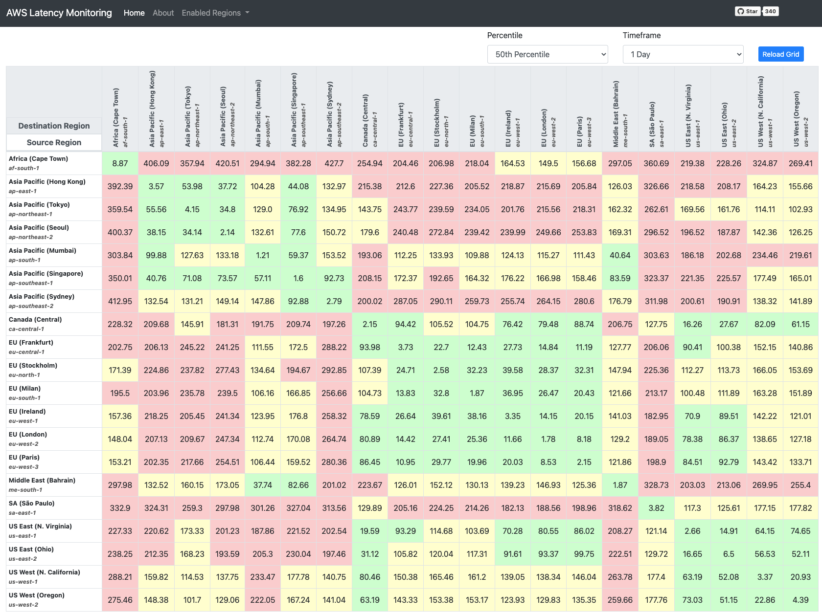 AWS 리전 전체에 대한 HTTP ping 테스트 실행