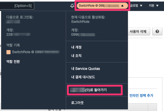 - Amazon Web Services 한국 블로그 : AWS 관리 콘솔에서 교차 계정 접근(Cross-Accounts Access) 활용하기