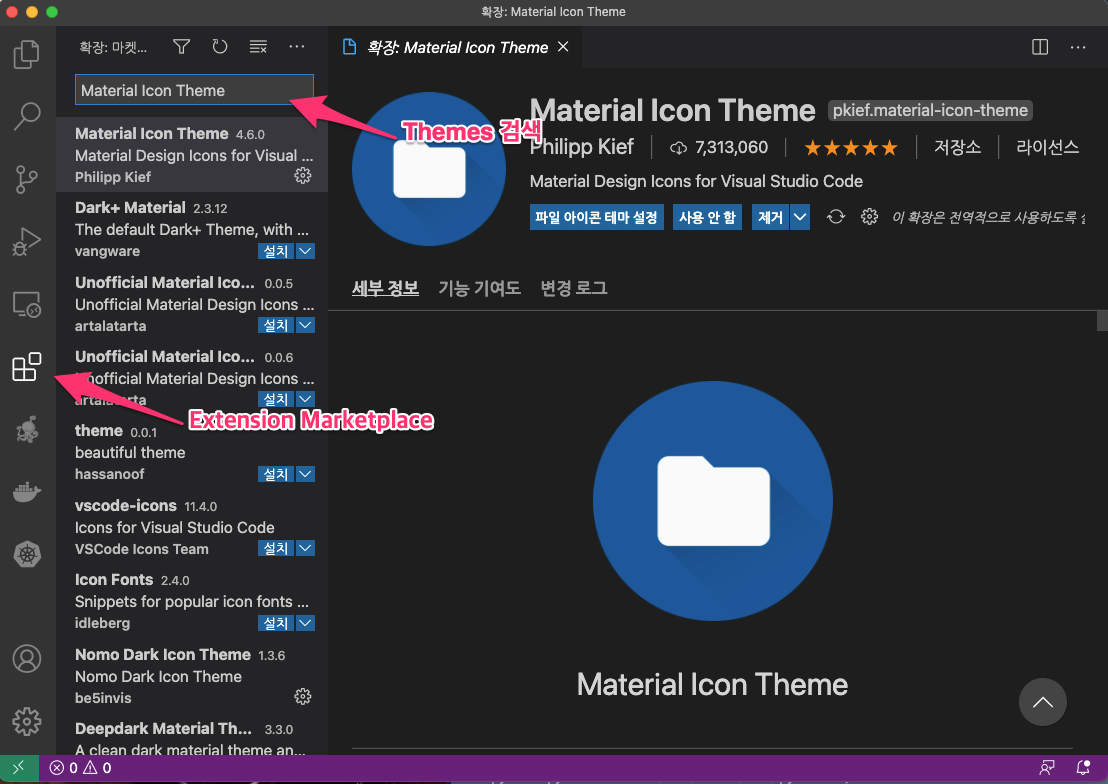 Visual Studio Code 테마 변경