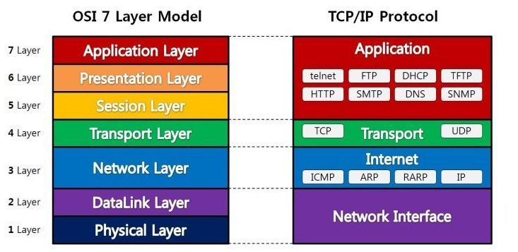 | 7 | 응용 계층(Application Layer) | HTTP, FTP, SMTP, Telnet,, DNS | 데이터(data) |