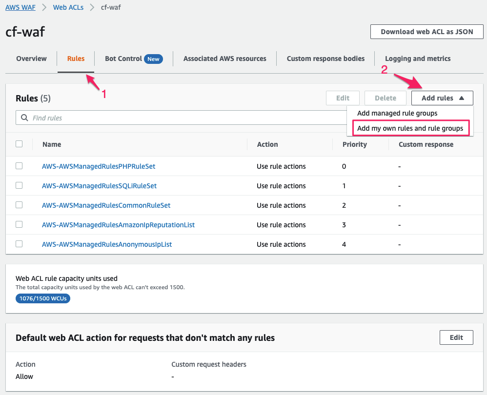 1. web ACL 생성