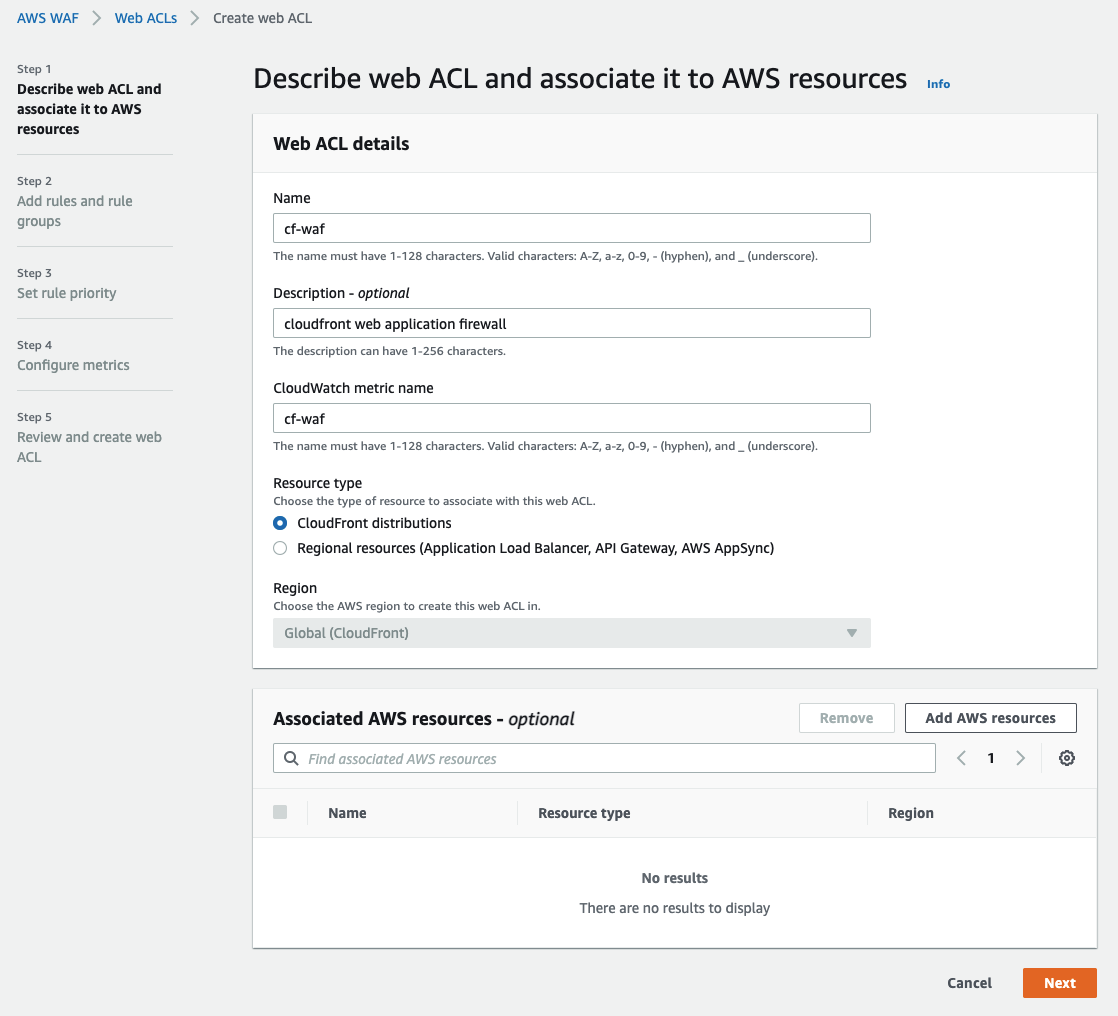 WAF(web ACL) 생성