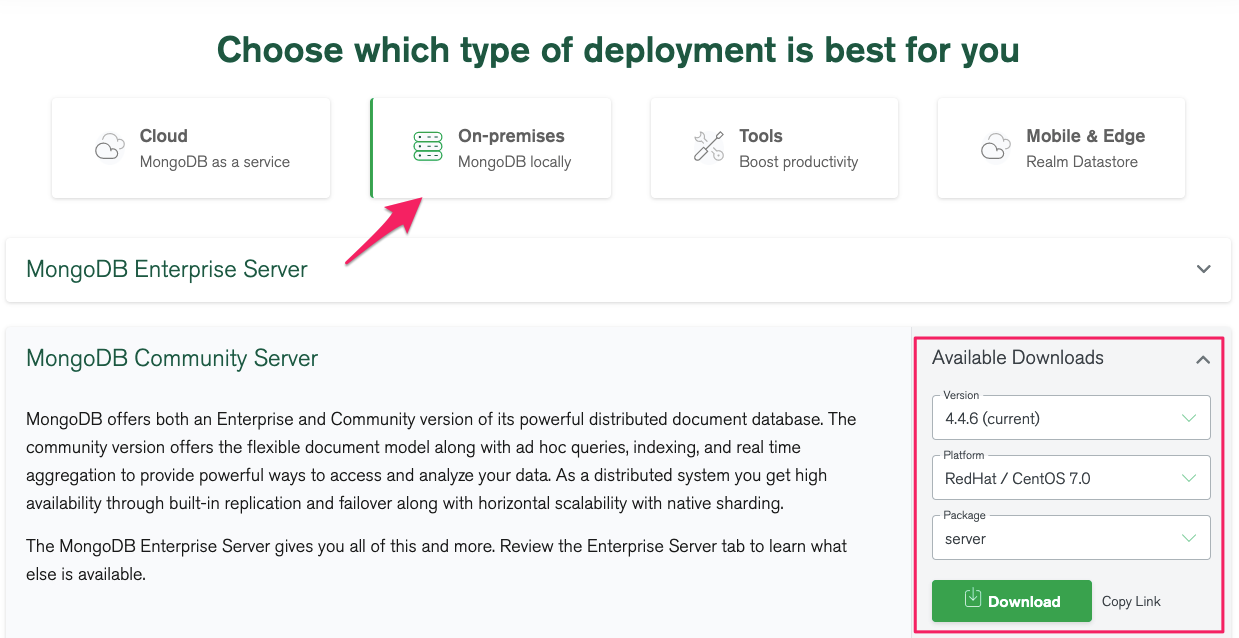 $ yum install https://repo.mongodb.org/yum/redhat/7/mongodb-org/4.4/x86_64/RPMS/mongodb-org-server-4.4.6-1.el7.x86_64.rpm