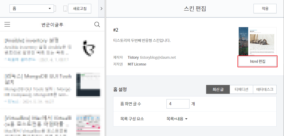 스킨 편집(새창) > html 편집