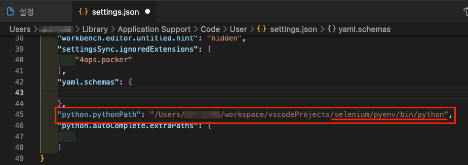 "python.pythonPath": "~/workspace/vscodeProjects/selenium/pyenv/bin/python",