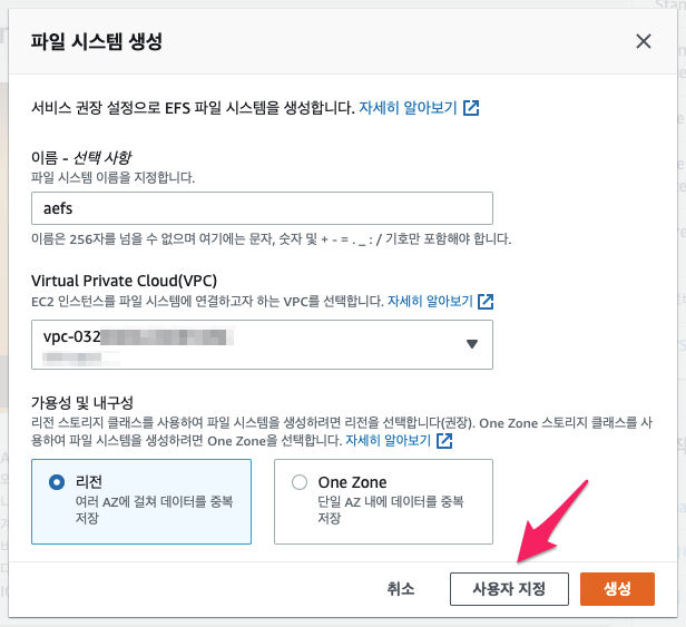 3. EFS 파일 시스템 생성