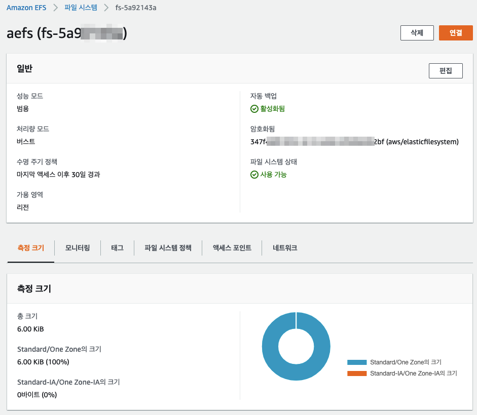EFS 생성 후 상세 정보 확인