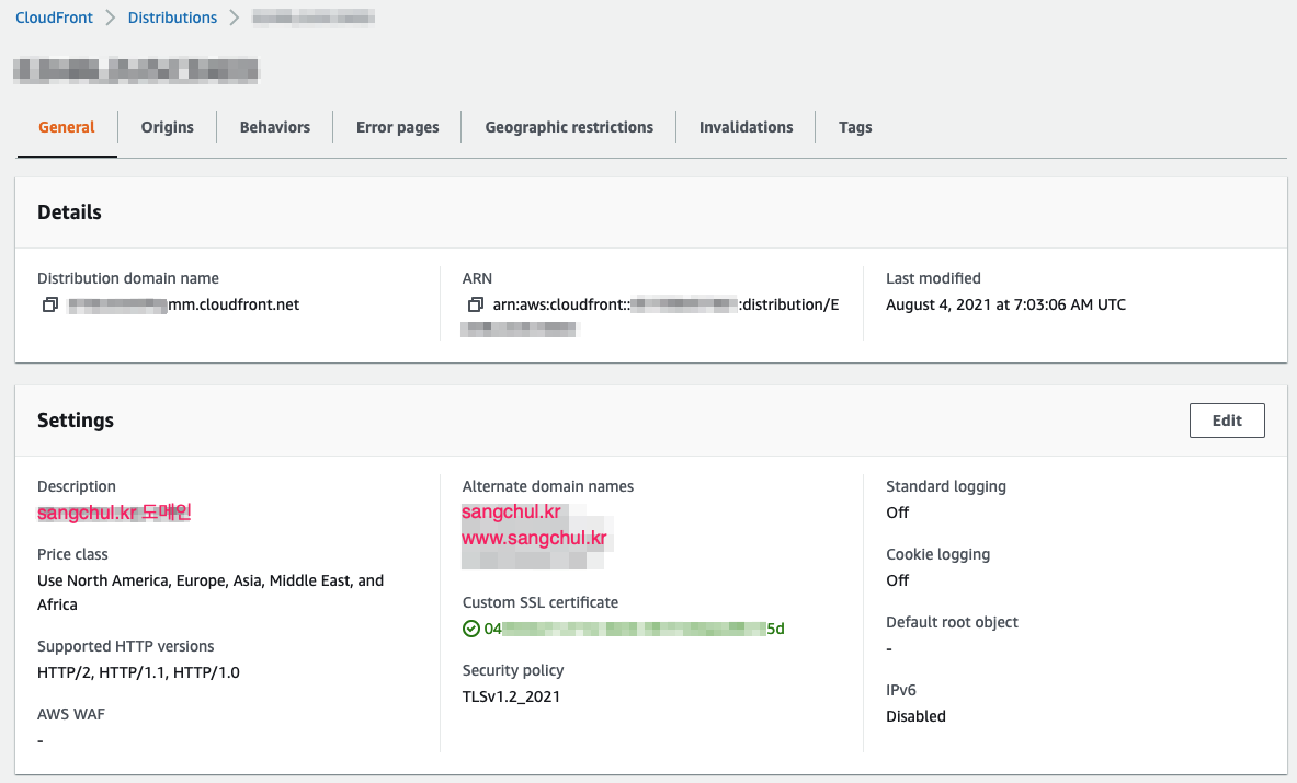 | www.sangchul.kr | CNAME | 단순 | Origin Domain |