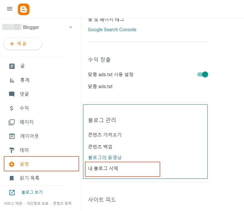 구글 블로그 서비스인 블로거(Blogger) 삭제하는 방법
